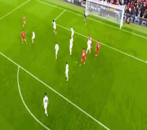 第78分钟,维尔茨混战当中送出妙传,小基耶萨传中,加克波门前推射建功,利物浦终于扳平比分,1-1!