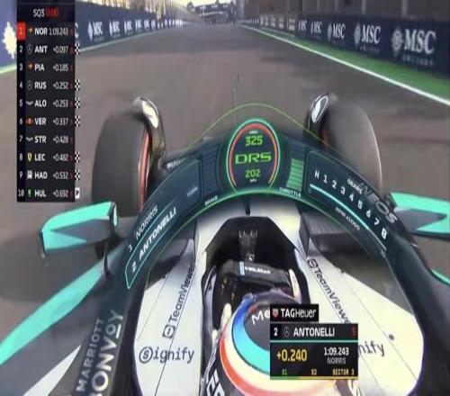 SQ1首轮飞驰圈结束,拉塞尔来到榜首,维斯塔潘&加斯利排在二三;