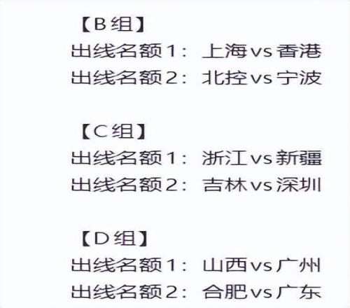 至此,B组C组D组被淘汰的6支球队就出炉了,那就是四川、南京、福建、长沙、辽宁、江苏。再加上A组遭遇3连败的天津,一共7支球队,提前出局了。