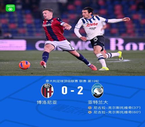 北京时间1月8日意大利足球顶级联赛 联赛 第19轮,博洛尼亚主场对阵亚特兰大。亚特兰大尼古拉-克尔斯托维奇梅开二度。最终比分博洛尼亚 0-2 亚特兰大。