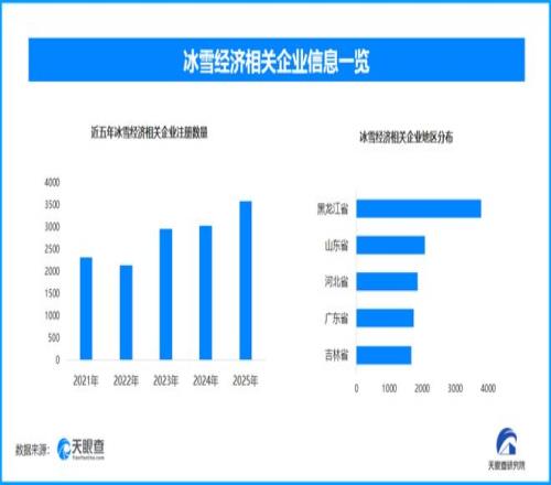 天眼查专业版数据显示,截至目前我国现存在业、存续状态的冰雪经济相关企业超2.6万家。其中,2025年新增注册相关企业超3500余家,从企业注册数量趋势来看,近五年间,除2022年稍有下降外,冰雪经济相关企业的注册数量大体呈现出增长态势,并在2025年达到顶峰。